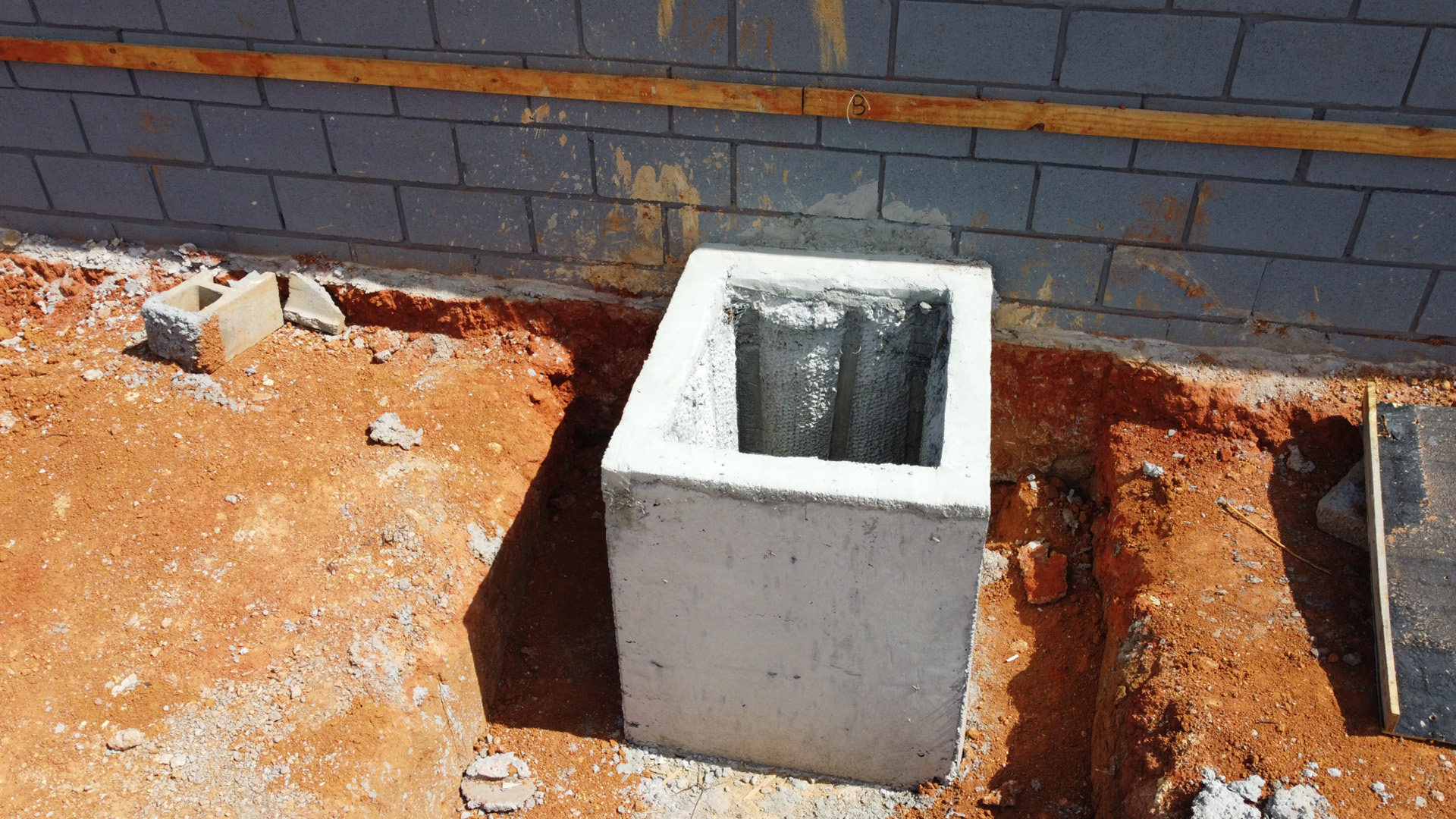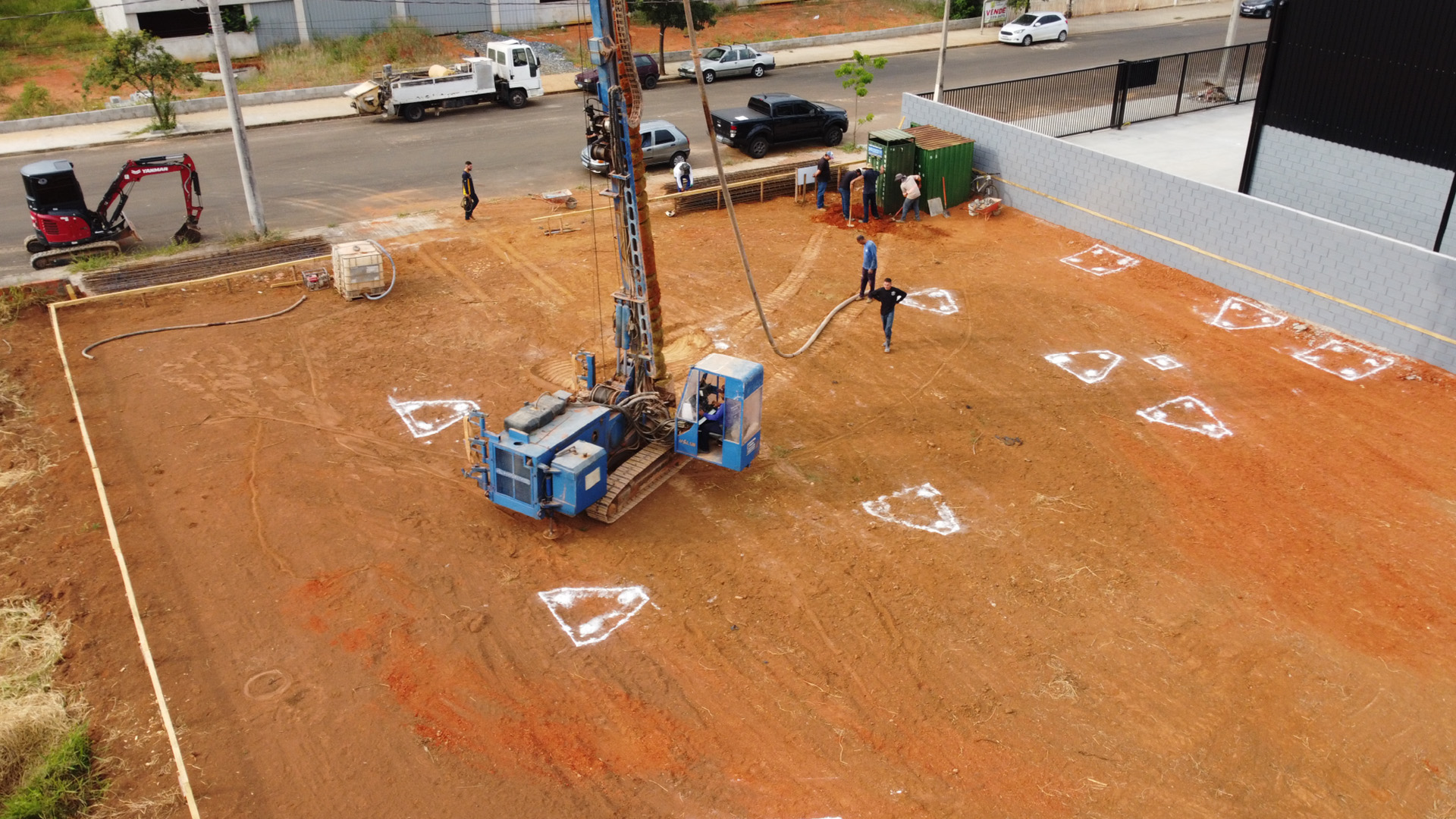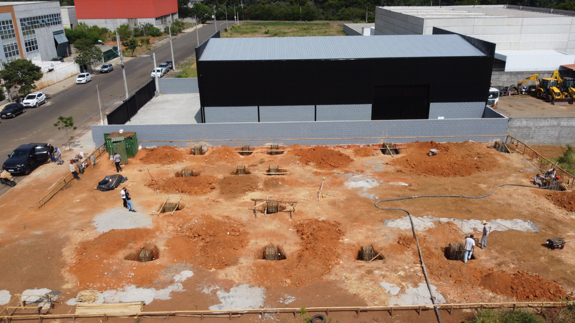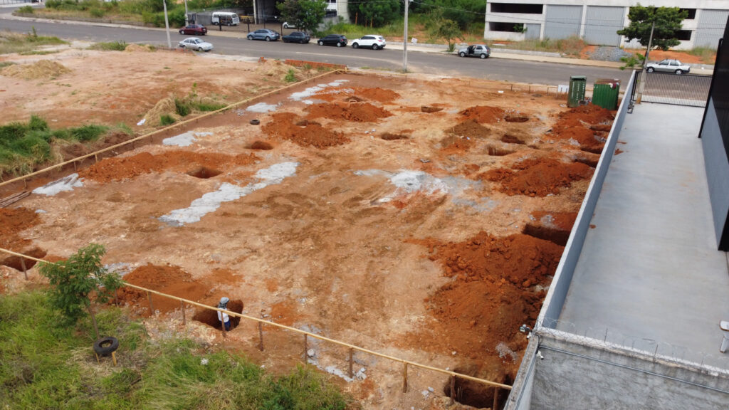 Foram realizados os serviços de montagem de gabarito, terraplanagem, escavação, colocação de ferragem armada para fundação, além da concretagem dos blocos e cálices.